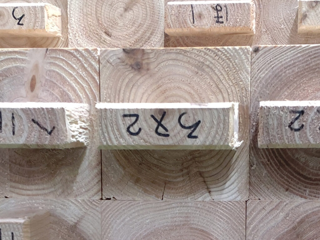 これまでのスギ乾燥柱材は乾燥時間の短縮を目的とした高温乾燥が主流であり、黒っぽい材色や内部割れがある等の問題がありました。