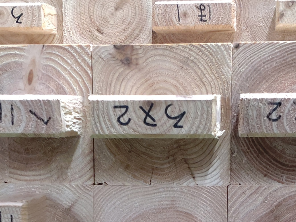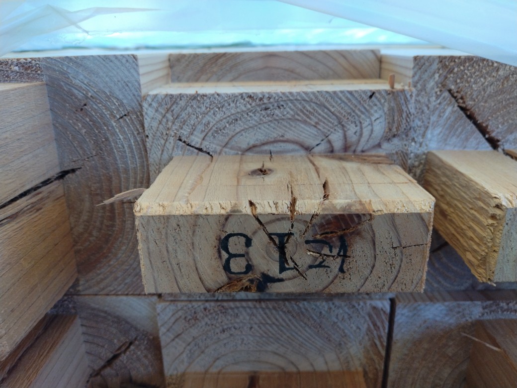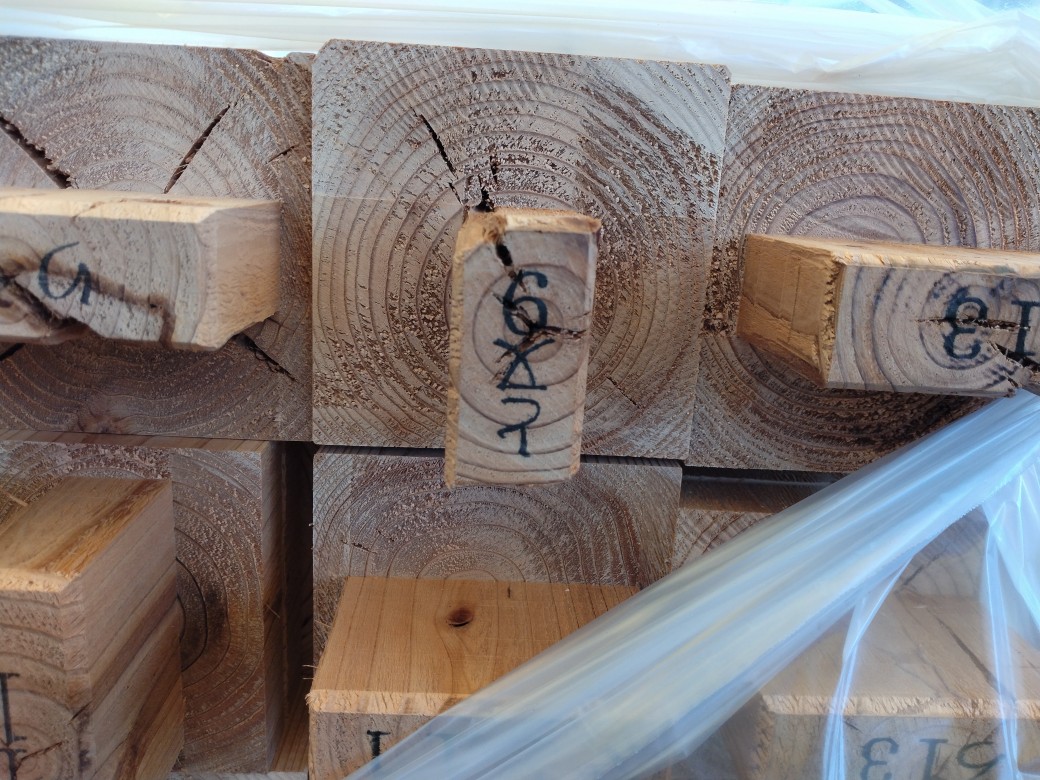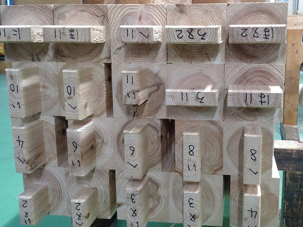 木材の強度は主に、圧縮、引張、曲げ、せん断の4つの力に対する抵抗力で評価されます。内部割れが発生するような乾燥方式では何れの強度も低下の可能性が有りますが、特にせん断強度の低下が認められると言われています。大分方式乾燥材ではそれらの強度低下が少なくなります。