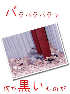バタバタバタッ、何か黒いものが目の前を過ぎっていった時、「あっ、卵があるよ!」中学生のリュウ君が叫びました。ヒロ君と私は、何のことか理解できないまま、木材チップの山をかけ上がりました。