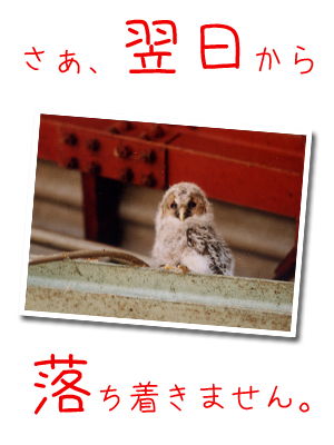 さわやかな初夏の風と共にやってきた彼らは、野生に育つ強さと助け合う愛情の素晴らしさを見せてくれました。彼らの姿が見えないとまるでわが子のように心配になり、山に帰ってほっとする反面、たかがふくろうごときに一抹の淋しさを感じるのは滑稽でしょうか。